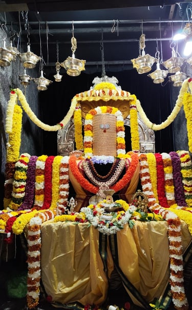 Uma Maheshwara is particularly renowned for bestowing the blessings of marriage. It is a deeply held belief that devotees who tie the sacred Uma Maheshwara Kanakana (a sacred thread or offering) are certain to be married within a year. Devotees seeking marriage often perform the Kalyanotsava (divine wedding ceremony) either before or after their own wedding, or even on both occasions, as a gesture of gratitude and seeking continued blessings. Those who have been seeking marriage for an extended period come to our temple to perform the Parvati Swayamvara Japa (recitation of mantras related to Parvati's choosing of a husband) and Homa (sacred fire ritual), and it is said that they are invariably blessed with marriage. Typically, two to three Kalyanotsavas or Girija Kalyanas take place each week, attesting to the powerful grace of Uma Maheshwara in fulfilling the desires of devotees seeking matrimony.